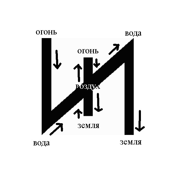 Во время выполнения этого ритуала все стихии необходимо проходить 2 раза, только стихию Воздуха проходится проходить три раза , чем и объясняется крылатость образа Семаргла.