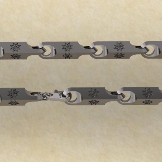 В дохристианских легендах Алатырь-камень лежит в самом центре мира: к нему сходятся реки времени, от него расходятся дорожки судеб. На этом камне сидит птица-Гамаюн, предвещающая добро, и отсюда же растёт мировое дерево. Восьмиконечная звезда — графический «паспорт» Алатыря: четыре длинных луча — стихии, четыре коротких — грани бытия. Надеть цепь с этим знаком означает не просто украситься, а выписать абонемент на баланс: между прошлым и будущим, духом и телом, разумом и сердцем.
