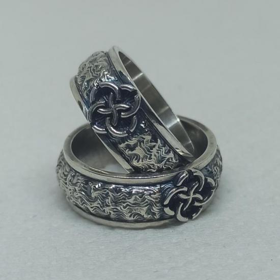 Заказал нам с женой на подарок на годовщину свадьбы каждому по такому кольцу "Гармония". Очень красиво смотрится две пересекающиеся восьмерки в центре кольца, которые символизируют вечность отношений. В живую кольца выглядят ещё лучше чем на изображении.