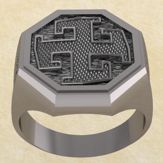Получил этот перстень в подарок от жены. Она, также, как и я знает истинную историю Руси и стремится к познанию ведического учения. Некоторые видят в узоре свастику, но не обращают внимание, что она развернута, в отличие от нацистской, в левую сторону. Это именно тот символ, который стоит носить человеку, помыслу которого обращено во благо.