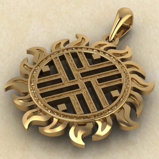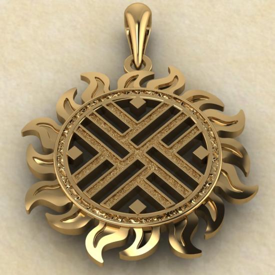 У славян такой узор наносили на купеческие пряжки, чтобы маршрут складывался выгодным, а у дружинников — на бляхах пояса: вернёшься из похода богаче, чем ушёл. Мы взяли этот символ дороги и отлили в тепло золота 585: теперь надежный путеводный луч живёт прямо у сердца.