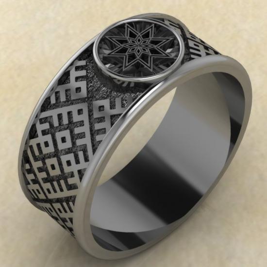 Графический знак Алатыря щита – восьмиконечная звезда, а в центре его малая звезда, олицетворяет принцип творца, солнце внутри солнца, мир внутри мира и вечный круговорот жизни. В нашем магазине Алатырь щит изготовлен из чистого серебра – красивый гравированный перстень выполняет функции талисмана и оберега.