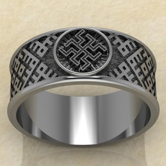 Магическое украшение – перстень из серебра с гравированным узором и солярным символом Зайчик можно купить в нашем магазине.