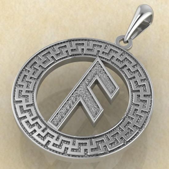 Подвеска Руна «АНСУЗ» в солярном обережном круге из серебра 925 пробы