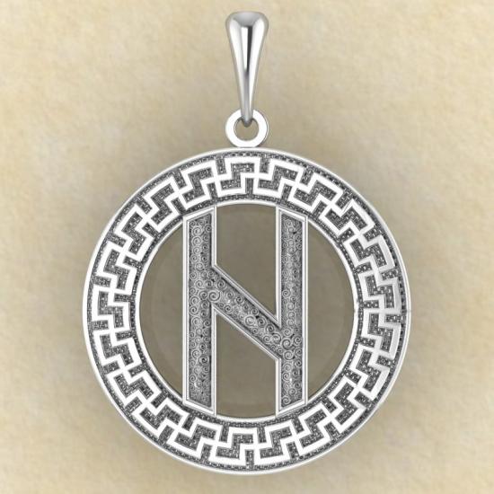 Подвеска Руна «ХАГАЛАЗ» в солярном обережном круге, Ø 30 мм, серебро 925 пробы