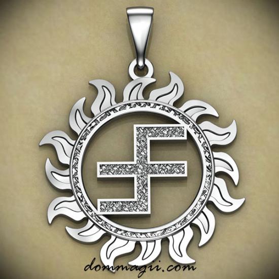 Оберег “Славец в солнце” заключён в солнечный круг, который усиливает его значение: