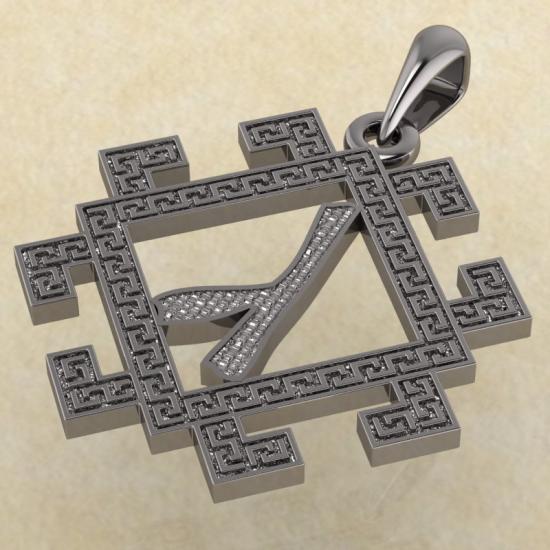 • Квадратный щит. По краю — переплетение древнеславянской меандры («ключ-соляр»): он не дает энергии расползаться.