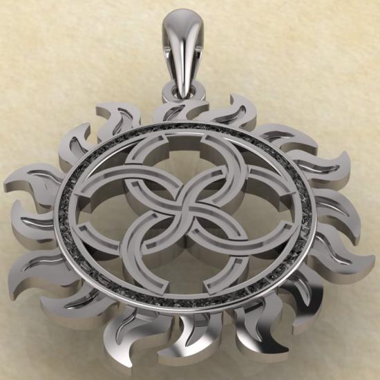 Совмещение солярного круга и переплетающихся линий Свадебника выглядит стильно и изысканно, подчёркивая тонкий вкус владельца. Украшение дополнит как повседневный, так и офисный или праздничный стиль.