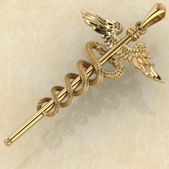 Тонкий медицинский бонус — кадуцей — символ здоровья. Золото носить 24/7 — микро-ионная терапия: меньше усталости, ровнее пульс в дедлайн-шторм.