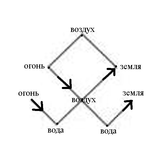 1) огонь; 2) вода; 3) воздух; 4) земля; 5) воздух; 6) огонь; 7) воздух; 8 ) вода; 9) земля.