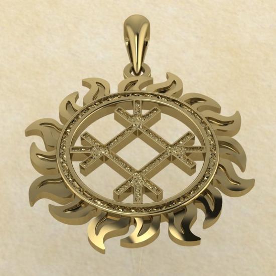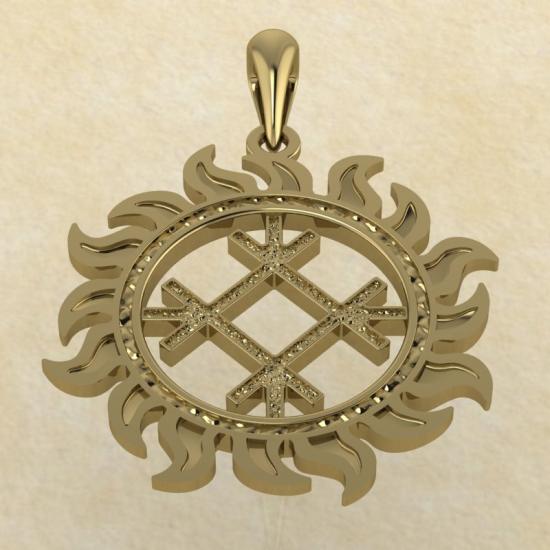 Представьте, что кусочек июльского полдня решает поселиться у самого сердца. Лучи тёплого золота смыкаются вокруг древнего знака Целебника, и пока миру нужны таблет-ки, вам хватает одного прикосновения к талисману: жара болезни испаряется, силы вырастают, как рожь после майского дождя, а настроение сверкает так же ярко, как отполированная грань этого маленького солнца.