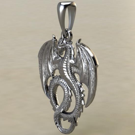 В нашем магазине можно купить изысканную подвеску из серебра с драконом. Оригинальный дизайн и виртуозная гравировка придаёт фигурке дракона объёмность и реалистичность.