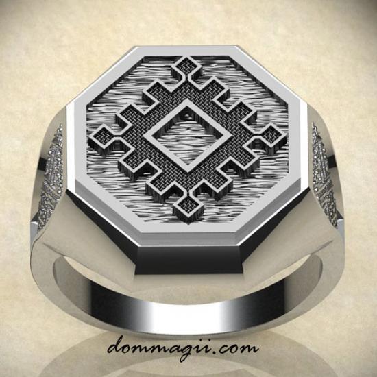 Серебро — металл Луны, интуиции, мягкой силы и глубинной защиты. В славянской культуре его ценили не только за красоту, но и за способность очищать, отражать и укреплять. Оно усиливает действие знака, делает его резонирующим. В кольце с Репейником серебро работает как усиливающий элемент: делает поле плотным, прозрачным, упругим. Такому человеку труднее навредить, сбить с курса, подчинить чужим эмоциям.