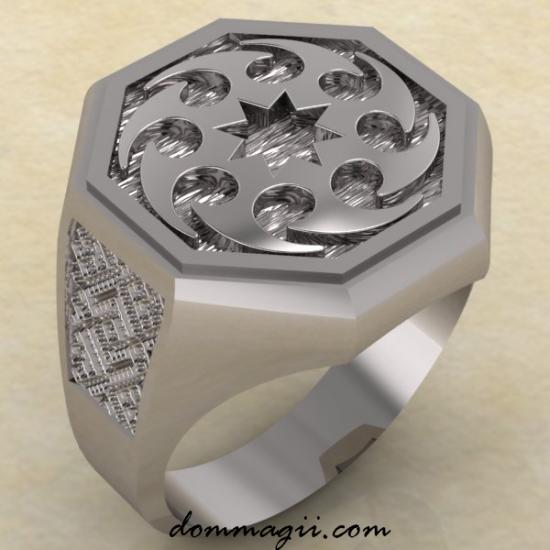 На кольце древнерусский символ счастья и благополучия. Символ смены времен года. Приносит владельцу уверенность в завтрашнем дне. Для людей, которые хотят всем своим видом показать, что он есть вершитель реальности.