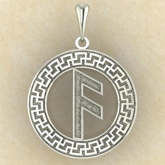Подвеска Руна «АНСУЗ» в солярном обережном круге из серебра 925 пробы