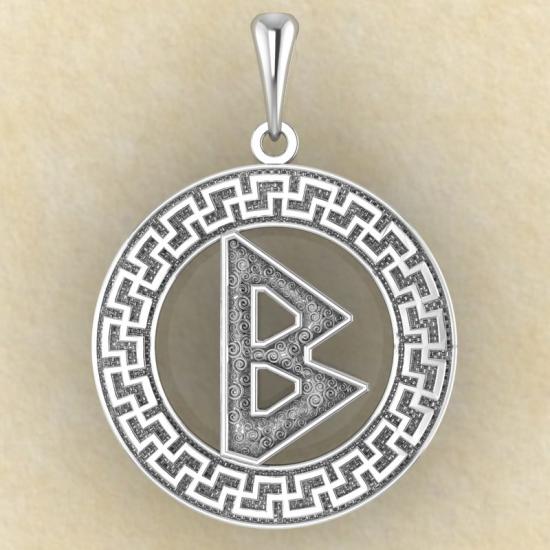 Подвеска Руна «БЕРКАНА» в солярном обережном круге из серебра 925 пробы