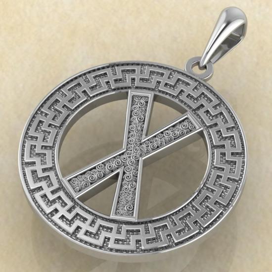 Подвеска Руна «ГЕБО» в солярном обережном круге из серебра 925 пробы