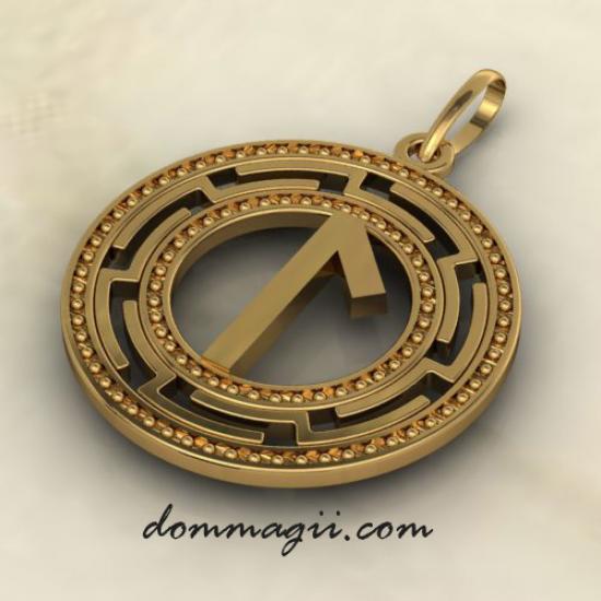 Дополнительная выразительность. Золотой рунический амулет выделяется, притягивает взгляд и при этом сохраняет глубокий сакральный смысл.