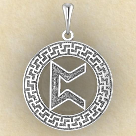 Подвеска Руна «ПЕРТ» в солярном обережном круге, Ø 30 мм, серебро 925 пробы