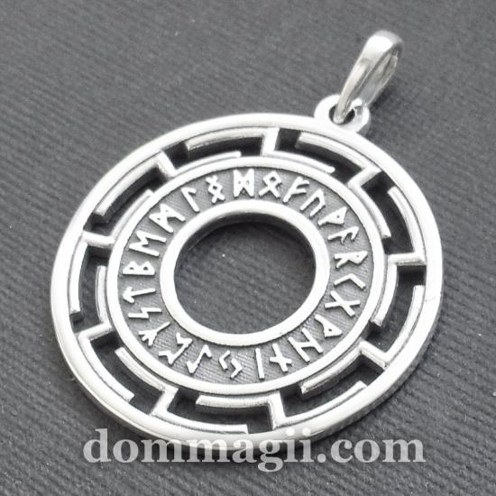 Нанесённые по кругу руны указывают на идею, что у любого явления есть начало, развитие и завершение. Ношение такого талисмана помогает владельцу обрести внутренний баланс и ощущение завершённости любых циклов в жизни.