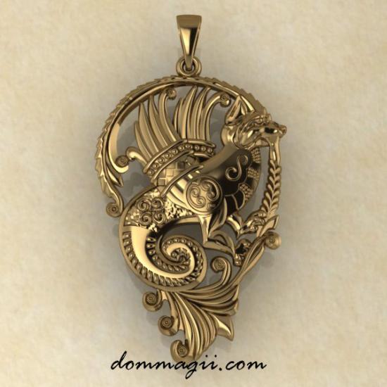 Золотая подвеска «Семаргл» — крылатый огненный пёс, который хранит ваш путь, идеи и богатство